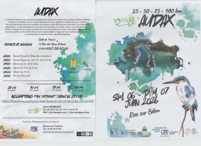 Brevet Audax à Riec-sur-Belon les 6 et 7 juin 2026